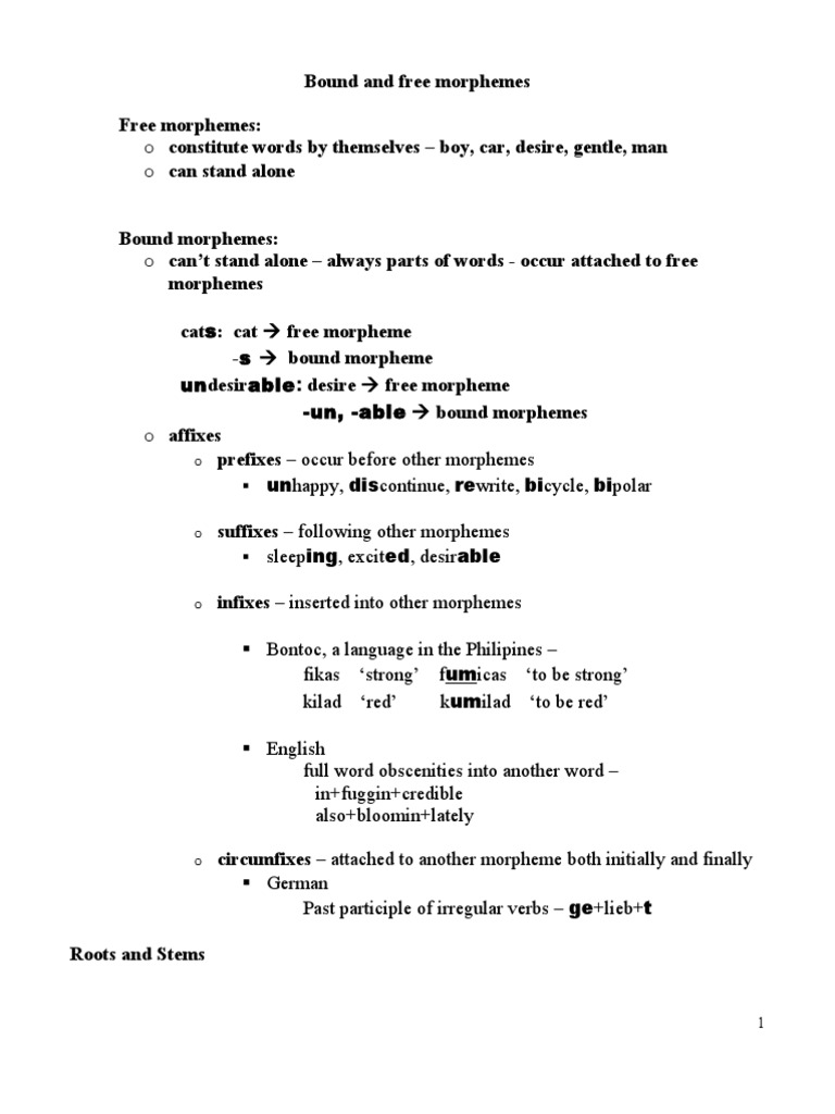 It is bound because although it has meaning, it cannot stand alone. Lexical (or content) and function (or grammatical) words. Sep 17, 2019 · bound roots are those bound morphemes that have lexical meaning when they are included in other bound morphemes to form the content words. It must be attached to another morpheme to produce a word. For bloomfield, the morpheme was the minimal form with meaning, but did not have meaning itself.