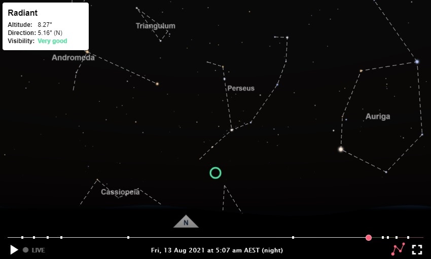 For example, the constellation perseus is the radiant for the perseids meteor shower;